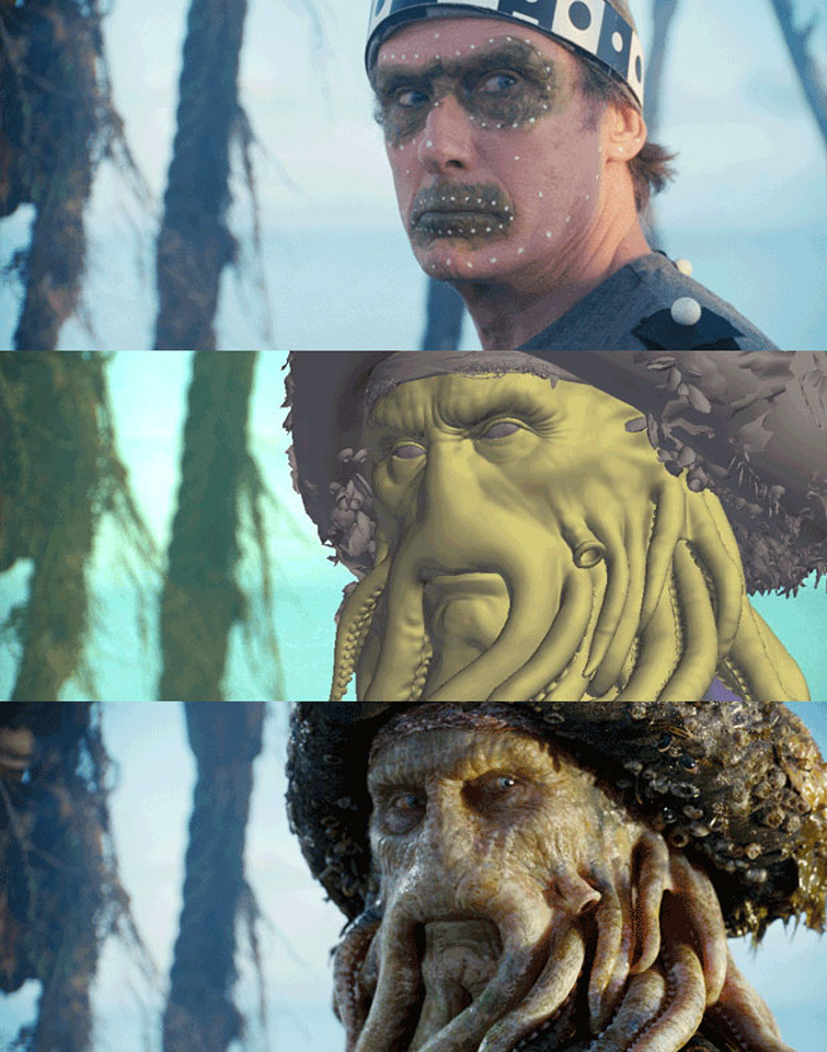 If you’re working with actors’ faces, a marker-based solution for object tracking is ideal. Check out this example from the Pirates of the Caribbean saga: